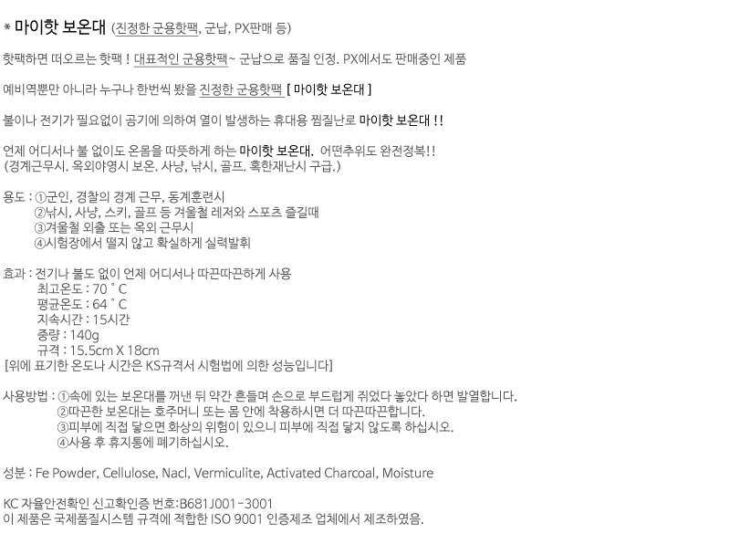 HOME > 군용핫팩 > 마이핫 > 마이핫 보온대